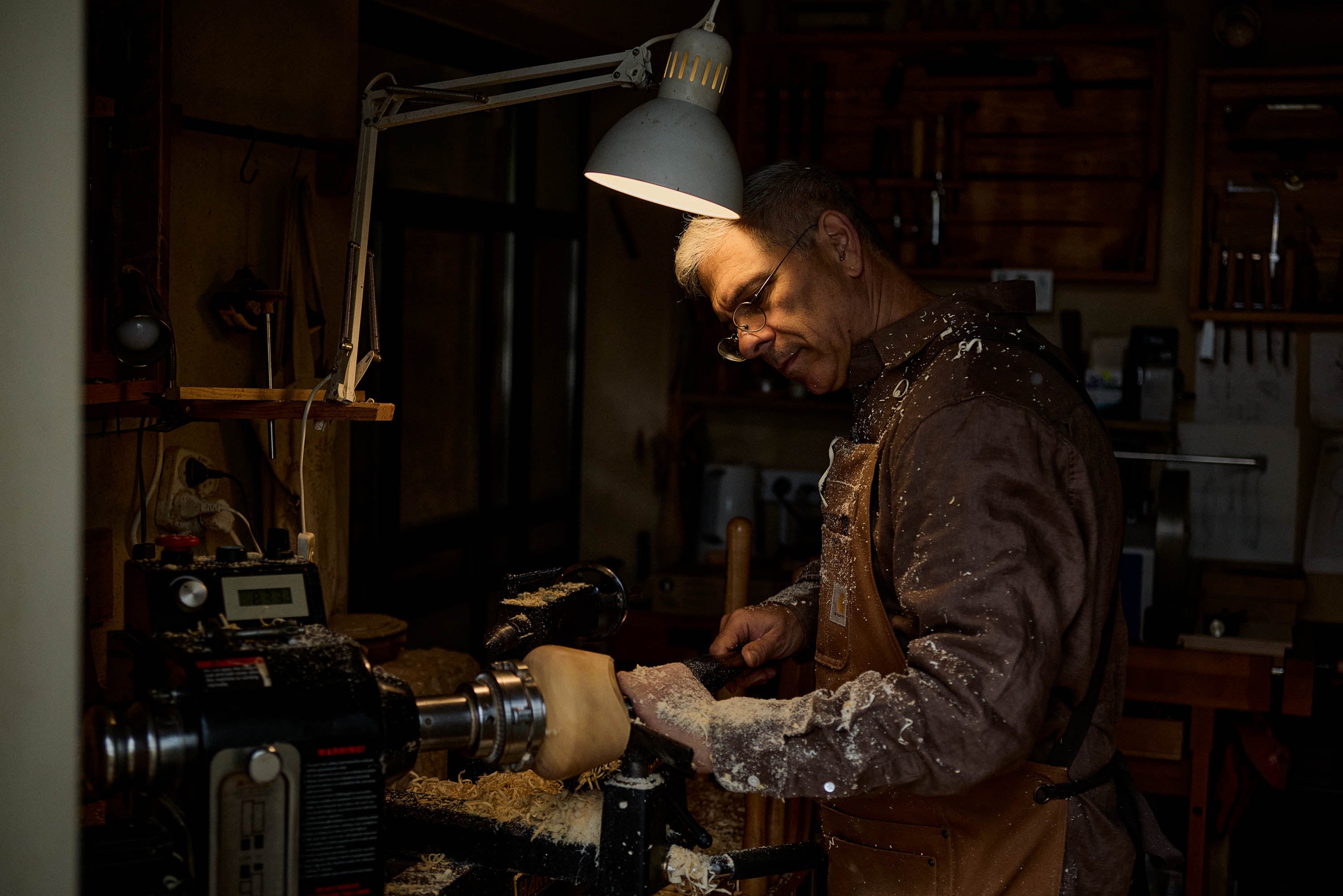 כל קערה מתחילה בהתבוננות בעץ עצמו. לפני החריטה אני בוחן את כיוון הסיבים, את הצורה הטבעית, ושואל את עצמי: מאיזה כיוון נכון לחרוט, האם הקערה תהיה עמוקה או תישאר עם שפתיים טבעיות ושאריות מקליפת העץ, מה יהיה גודלה ולאיזו מטרה תשמש. תוך כדי התהליך, לאחר הסרת החומר שאינו נחוץ, האופי של הקערה הולך ומתבהר בשילוב מתמשך בין העין המתבוננת בעבודה לבין היד האוחזת במפסלת החריטה.